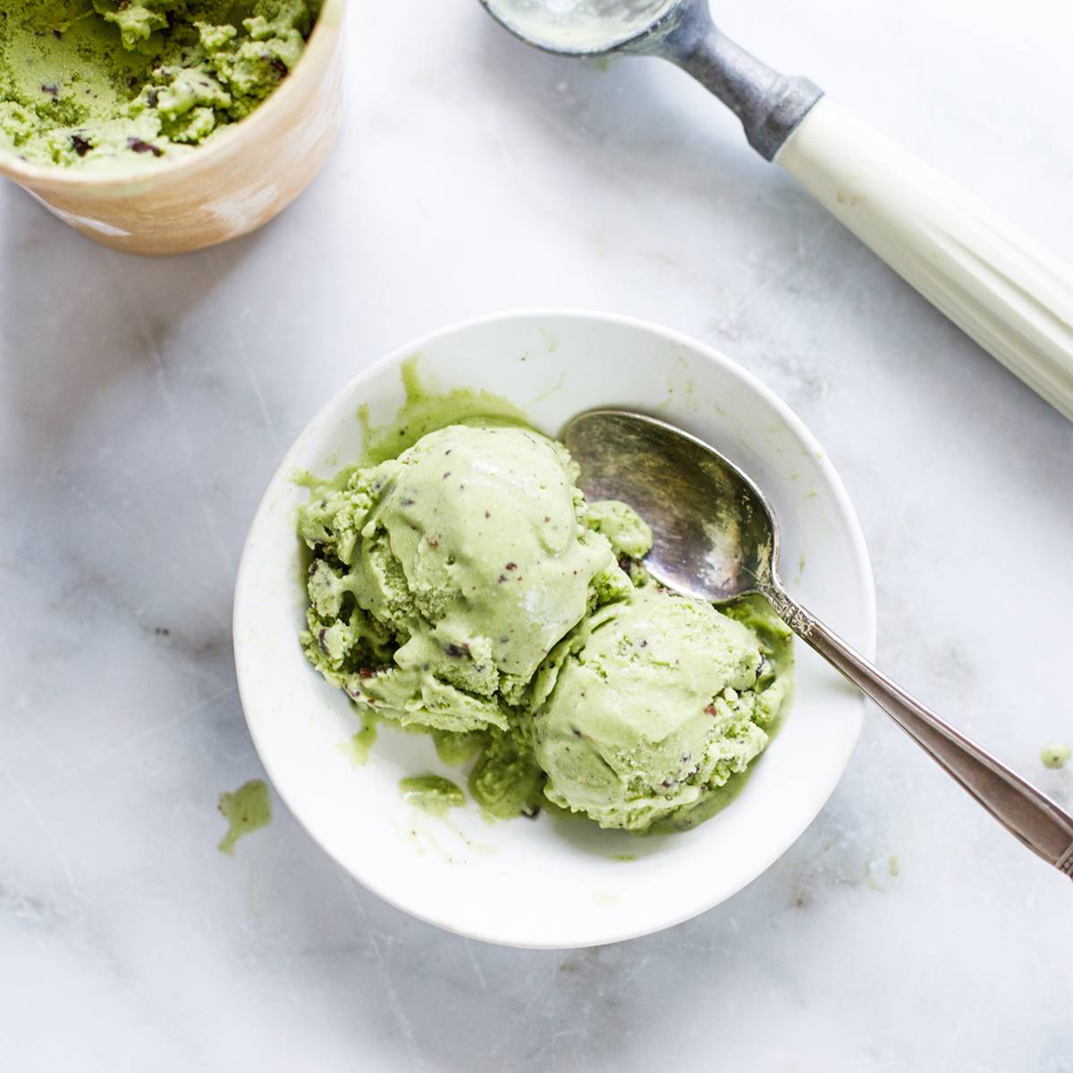 Cookbooks | Recipes | Videos This ice cream hits a lot of checkboxes for me: it’s cool, it soothes my belly, and it has greens in it. It’s also one of the healthiest ice cream recipes I’ve created so far: Mint chocolate chip ice cream using fresh spinach, mint, coconut milk, maple syrup or honey, and a bit of salt. And if you’re avoiding chocolate, no problem. Just leave it out or substitute it with pistachios or walnuts. It’s also dairy-free, so no cow-based cream here. It’s creamy enough...
